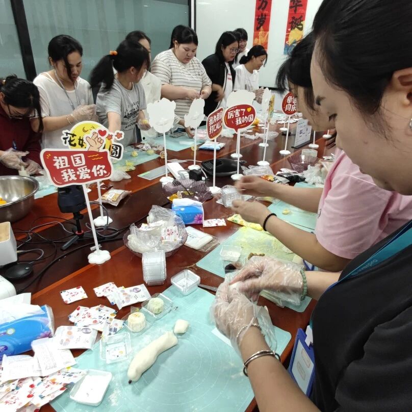 "Using mooncakes as the medium and the heart as the lamp, kneading and wrapping shape the Mid-Autumn Festival." Everyone made mooncakes by hand, enclosing the sweet fillings in the dough, and also kneading the festival's blessings and the hope for reunion into each exquisite mooncake.