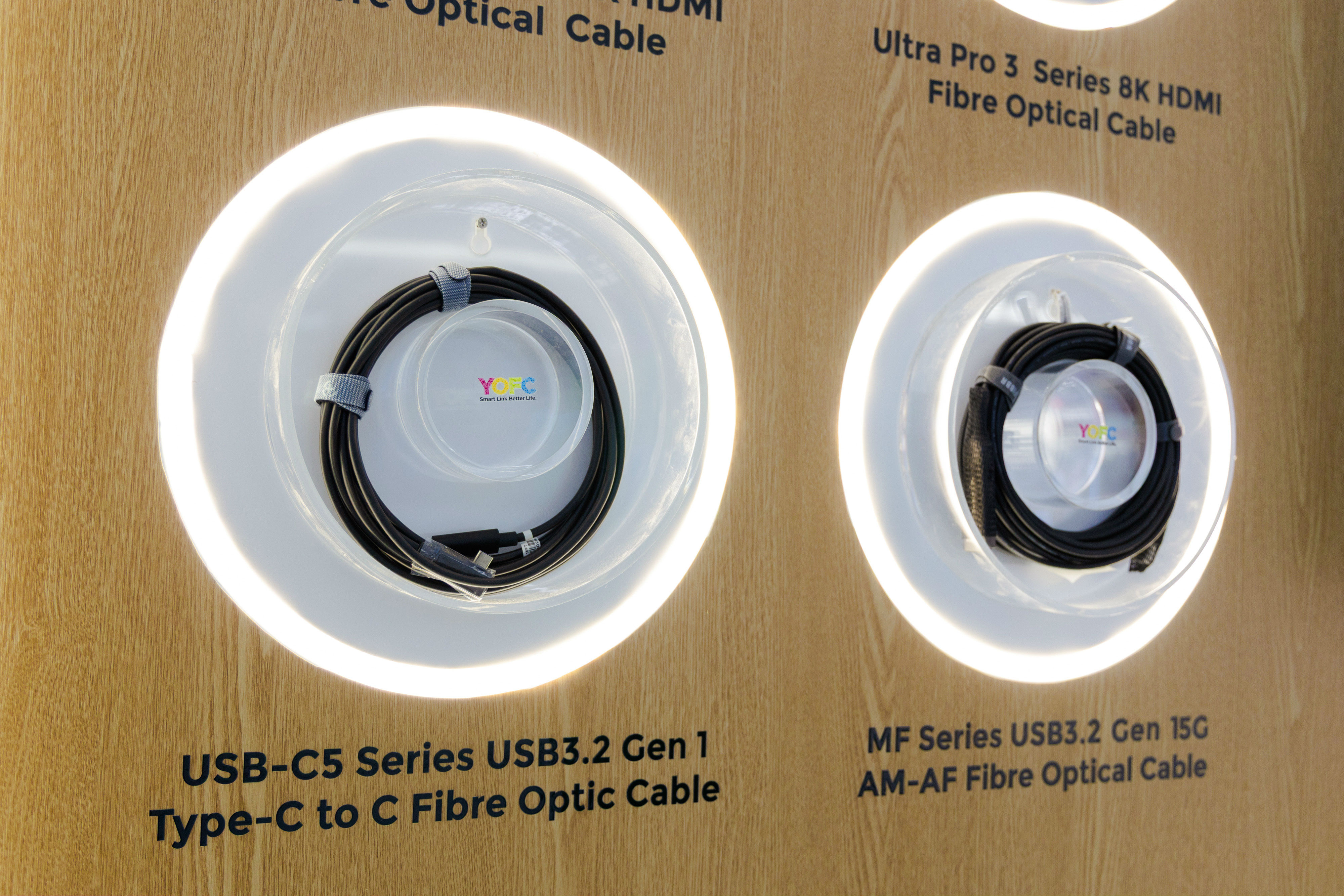 The showcased star products include: The Ultra 8KII HDMI optical fiber cable, equipped with self-developed chips and a bandwidth of up to 56G, ensuring stable transmission of 8K signals; The Ultra Pro3 HDMI optical fiber cable, featuring an intelligent digital display that provides real-time feedback on connection status and transmission rate; The U3 series 10G USB-C true full-featured optical fiber cable, the world's first full-featured active optical cable on the market, which simultaneously supports 10G data transmission, DP video output and PD charging, truly realizing plug-and-play.